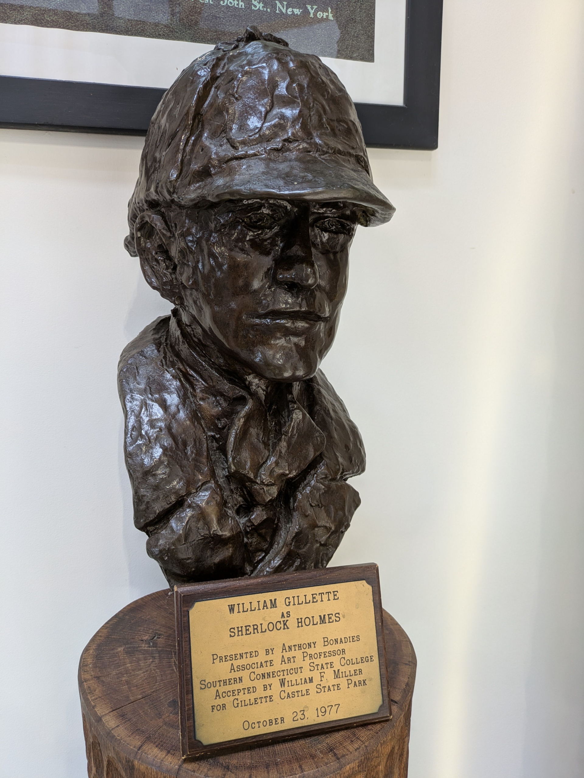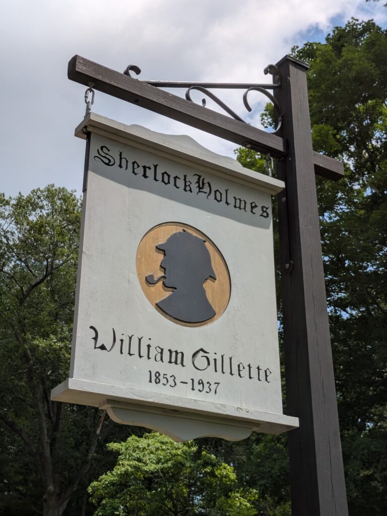 I won’t try to reveal all of her secrets here; for that you must visit. I will only tell you that it was the home of actor William Gillette, internationally famous in his day for his stage portrayals of Sherlock Holmes, and responsible for the image of Holmes that we all know, with the deerstalker hat and calabash meerschaum pipe.