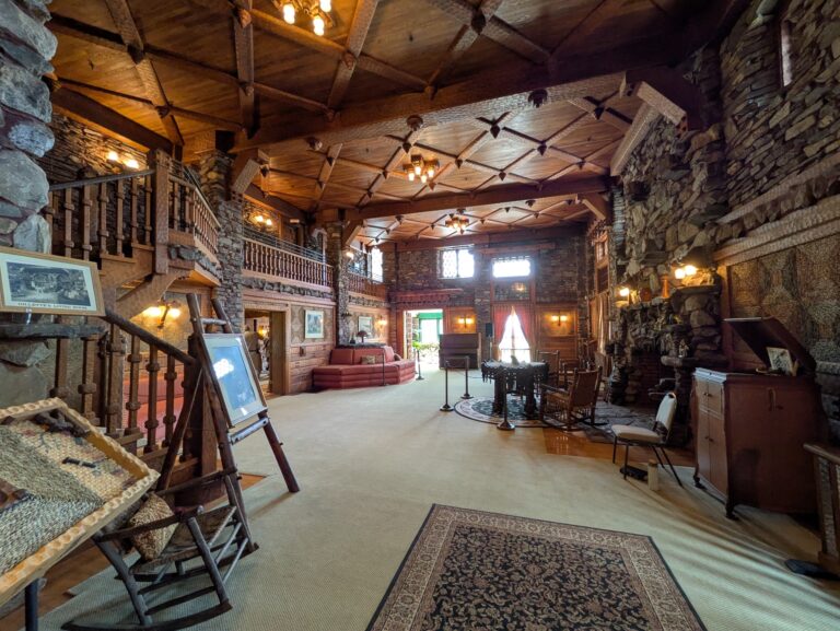 The castle was intended to be his retirement home, and the rather shabby “pile of rocks” appearance was by design, inspired by the ruins of castles he would often see on his trips to Europe. Construction began in 1914 and ended five years later.
