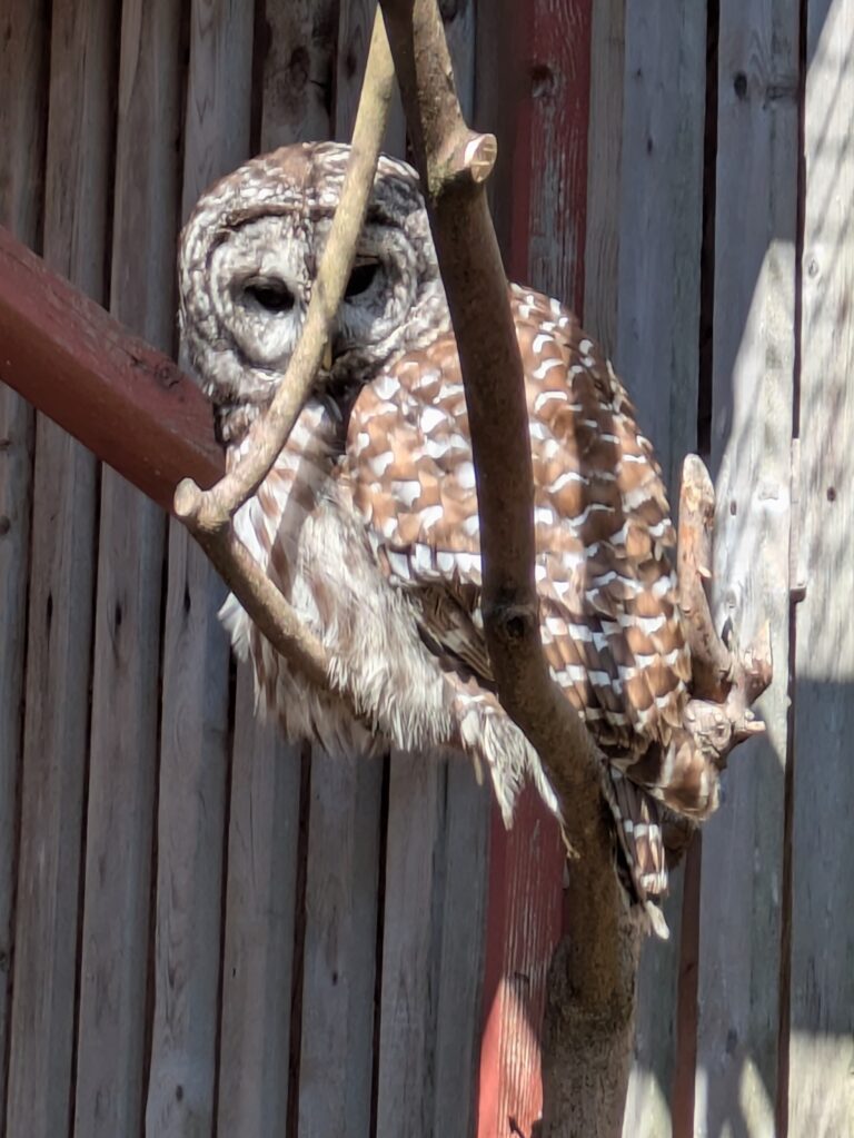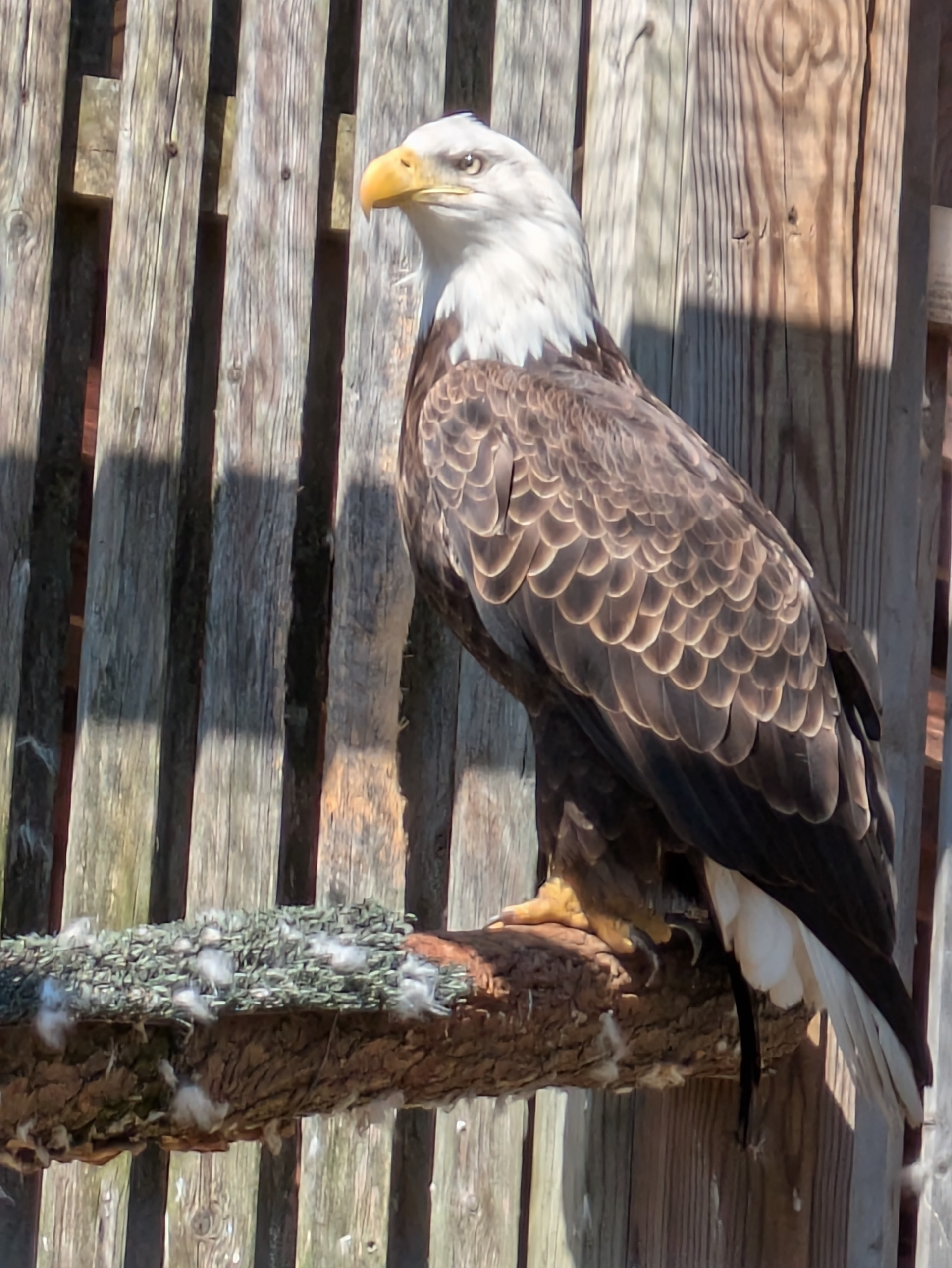 They also have a handsome bald eagle, who appears to have a broken wing on his right side.