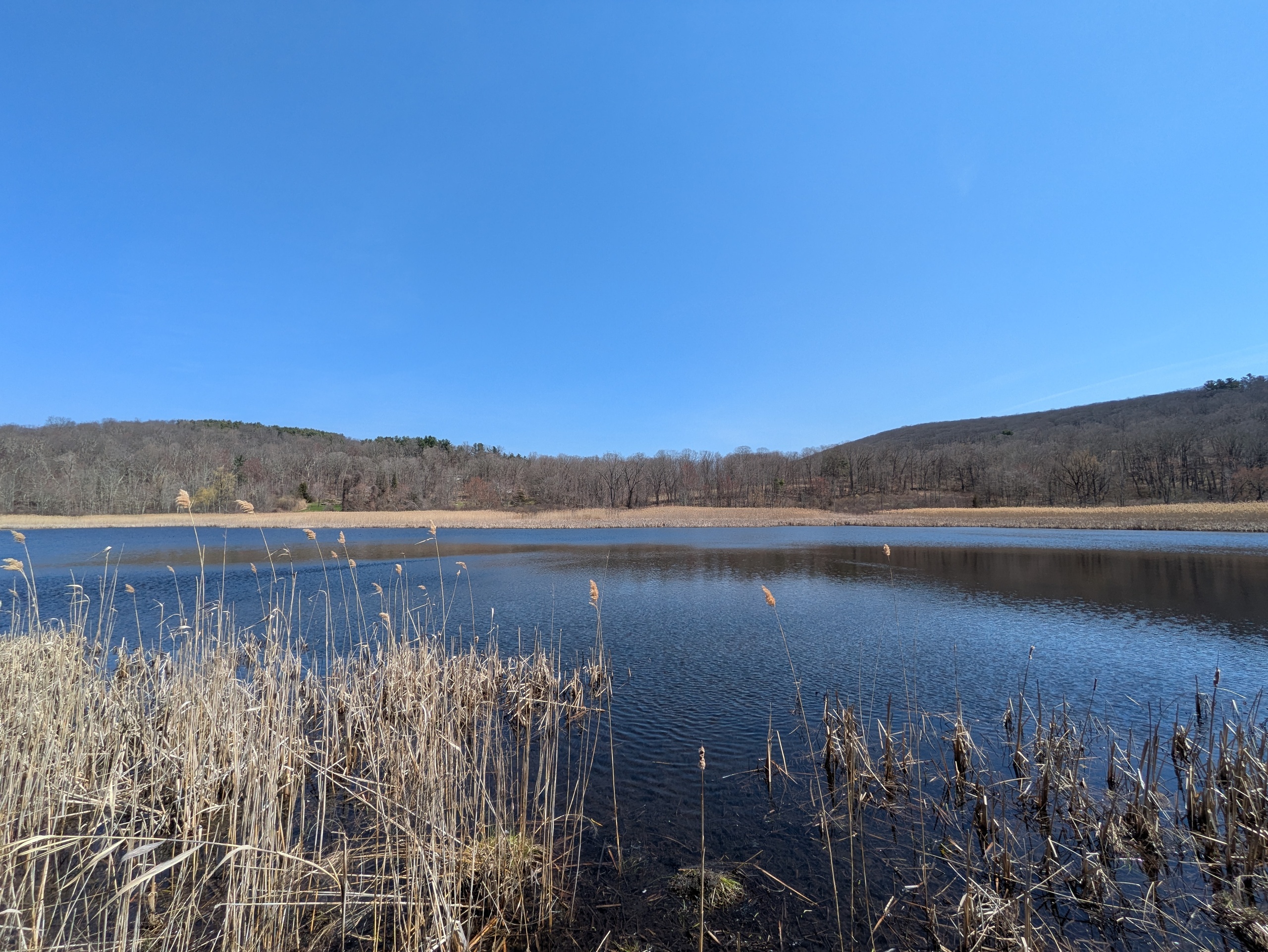 We headed over to the pond, around which they have a network of walking trails. There were quite a few cars in the lot, but we did not see another soul.